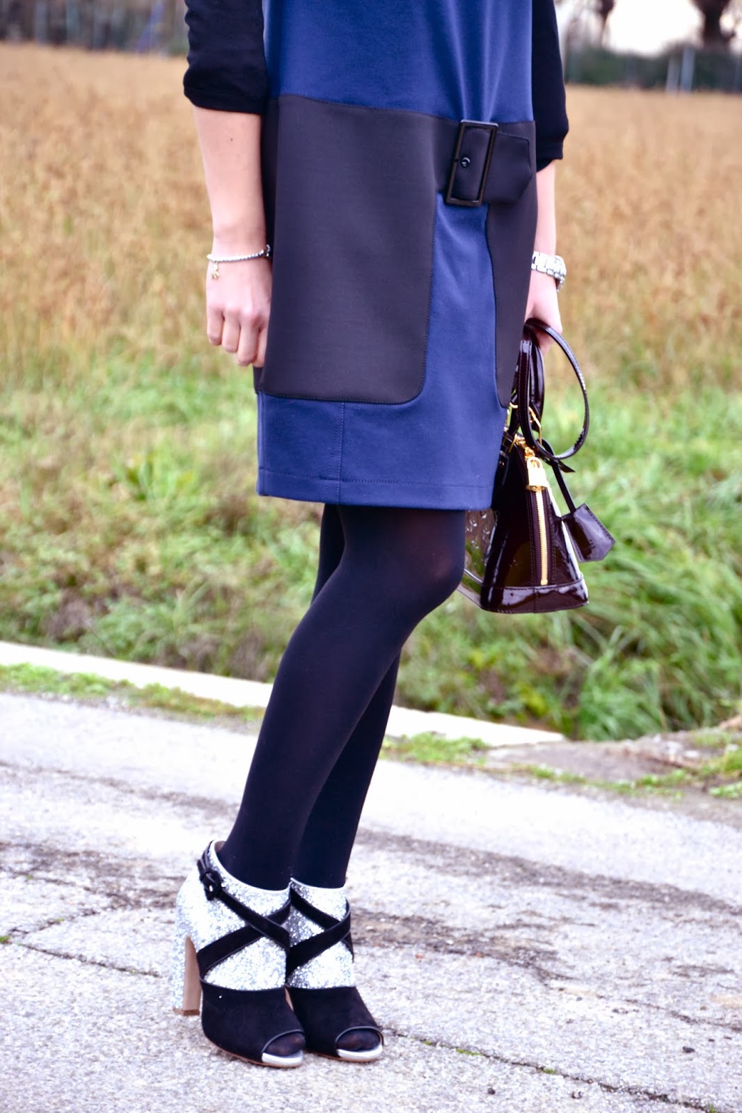 Dress: 1-ONE; boots: Miu Miu; bag: Louis Vuitton, necklace: Rebecca.