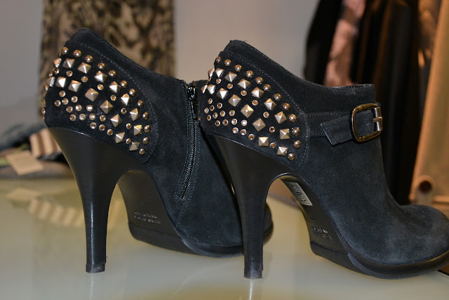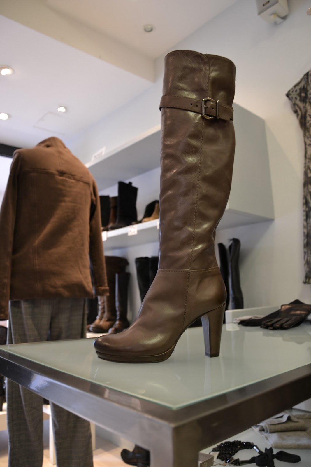 first outfit: ankle boots: Logan, knit and scarf: Hoss; second outfit: coat and dress: Hoss, ankle boots: Strategia