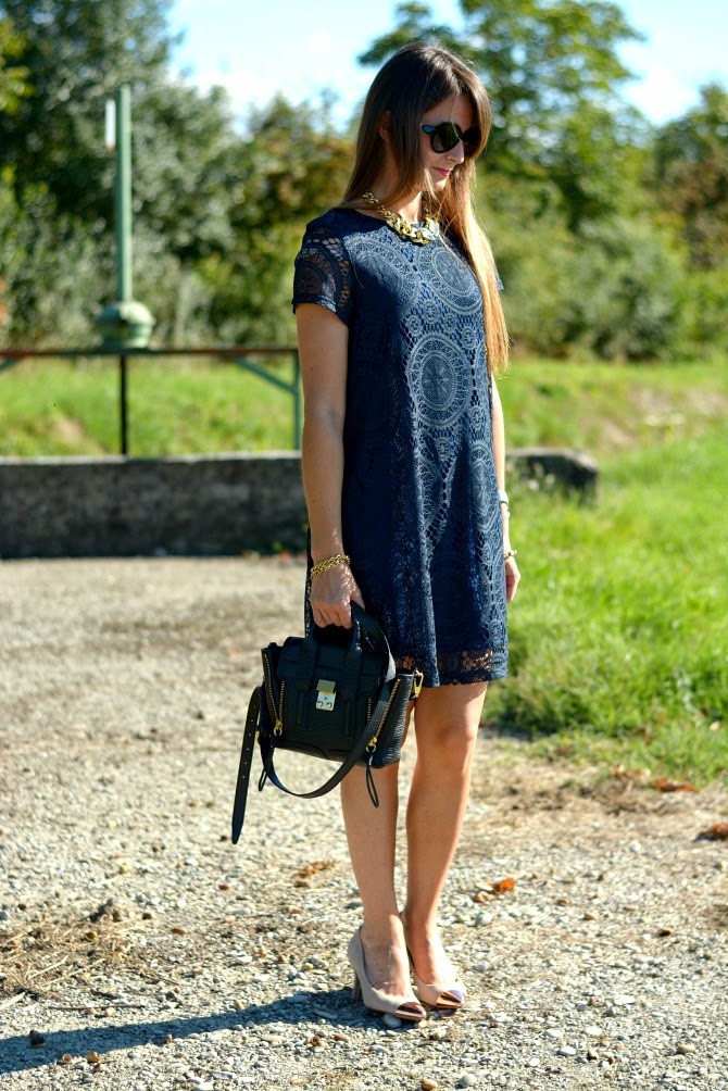 Riscoprire la femminilità con un abitino di pizzo semplice e bon ton. Anche per un’amante dei pantaloni come me è possibile. Il colore blu brillante e il taglio leggermente svasato sono due caratteristiche che mi piacciono molto, lo trovo adatto anche di giorno, per un appuntamento di lavoro o per una passeggiata in città. Ultimamente mi sto affezionando ai dettagli in pizzo, cosa mai successa. Inevitabile, con il passare del tempo i gusti cambiano, è proprio vero. Forse perchè cambiamo noi… Buon venerdi a tutti!