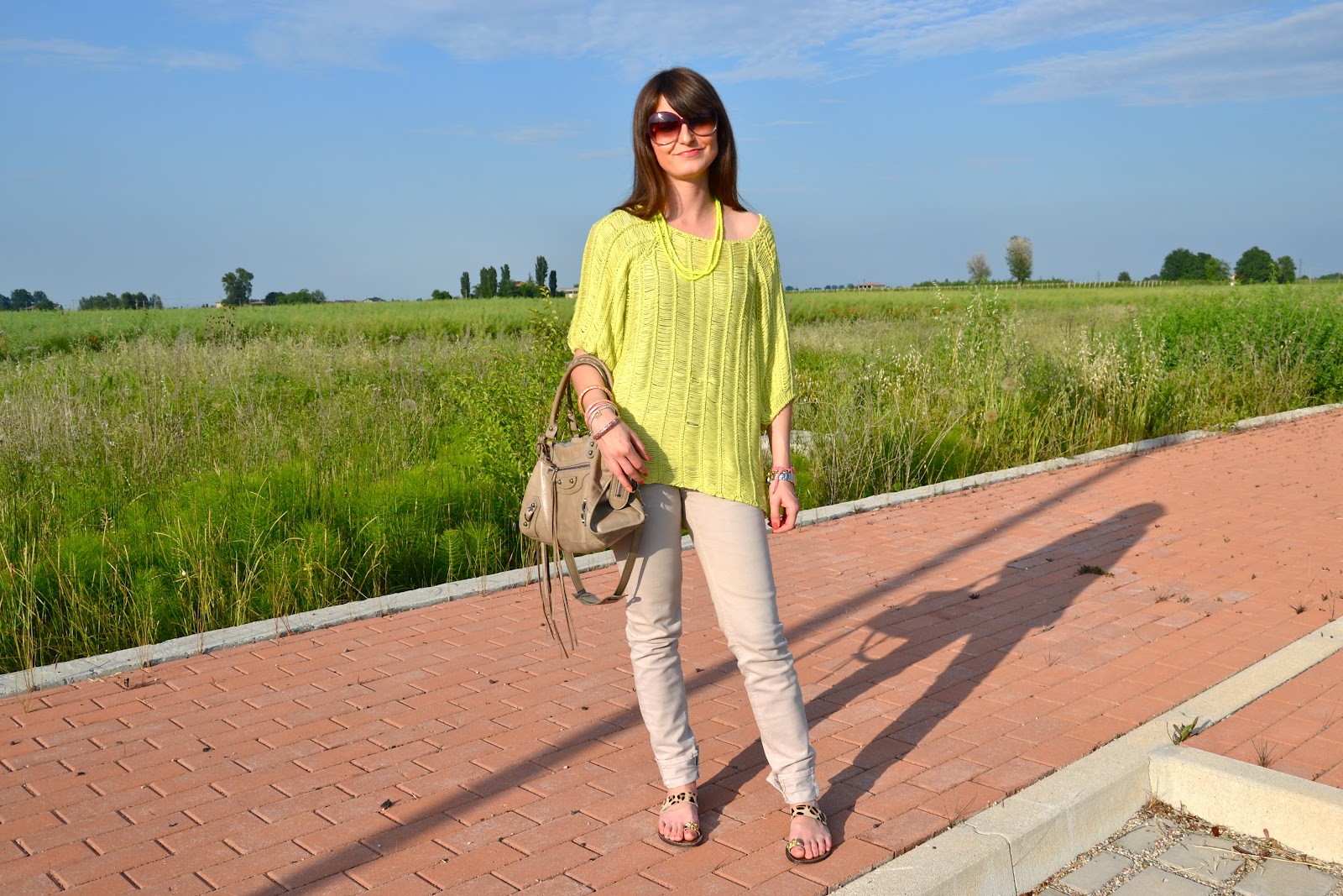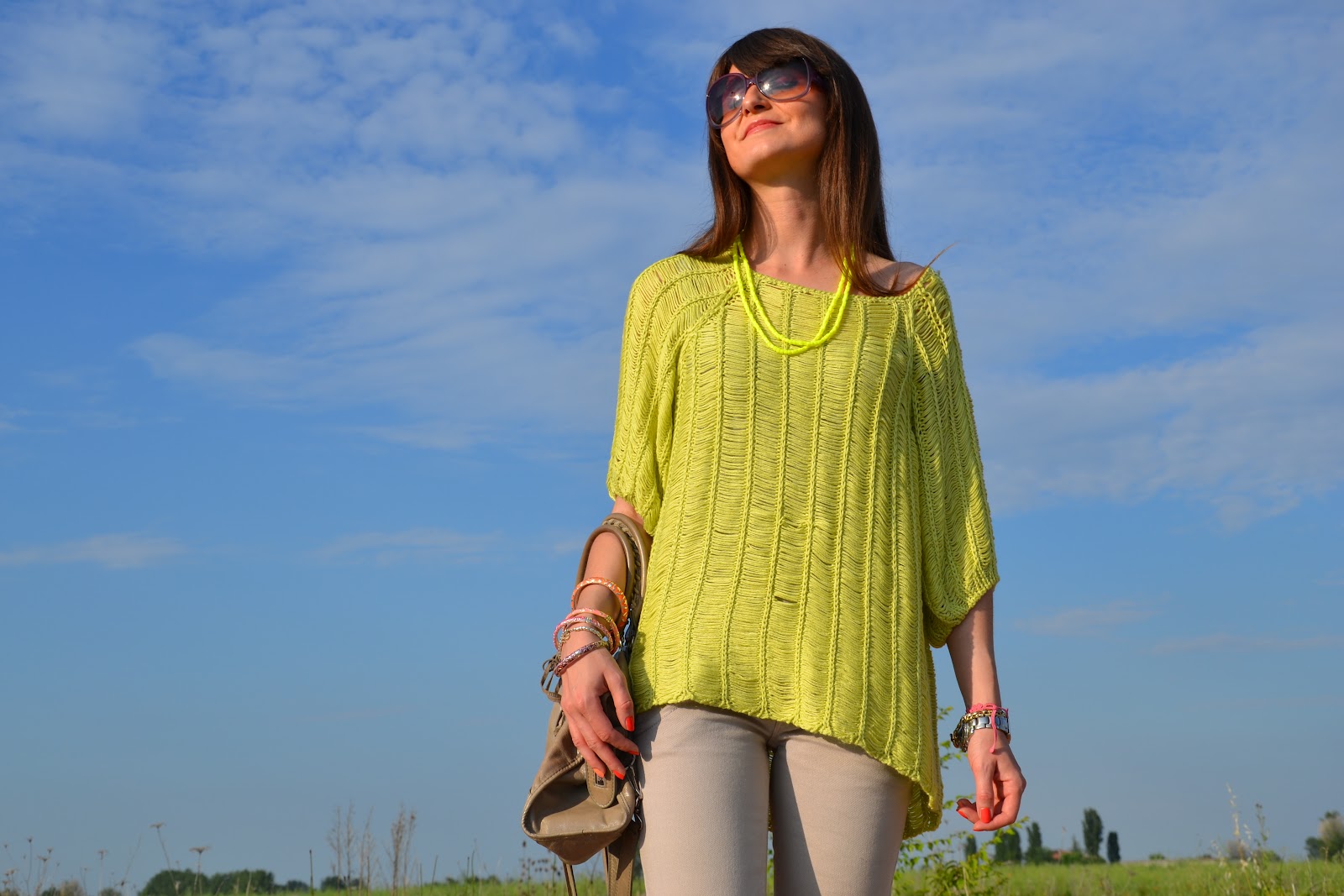 1. Bentornata Lucy! Piano piano si torna alla normalità…. L’outfit è carino, molto vitaminico! Bello il maglione, ma immagino sia delicatissimo!!!