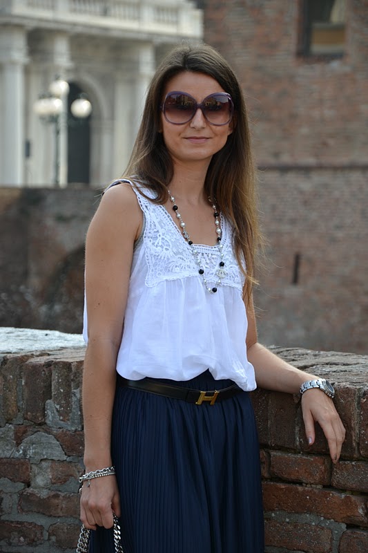 Pictures taken at the castle of Ferrara. I wore pruple wedges Yin (thanks to FOXY SHOP) combined with a dark blue skirt from H&M and the Falabella gray-silver to give a touch of light. It a combination of unusual colors, but I like the result. And you? I remind you that there are only 2 days at the end of CHANEL Giveaway, the winner will be drawn Wednesday 21. Follow me on Twitter if you like, @Lucydy79, to find out news and updates in real time! Good Sunday to you all!