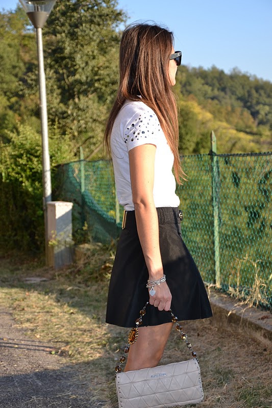 Belt: Dolce & Gabbana; skirt: Denny Rose (old); bag: Miu Miu; shoes: Giuseppe Zanotti; sunnies: Cèline
