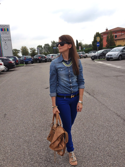 Il tocco perfetto, come la ciliegina, è la collana neon sulla camicina di jeans! oggi sei mia ospite, vieni a rimirarti :-)