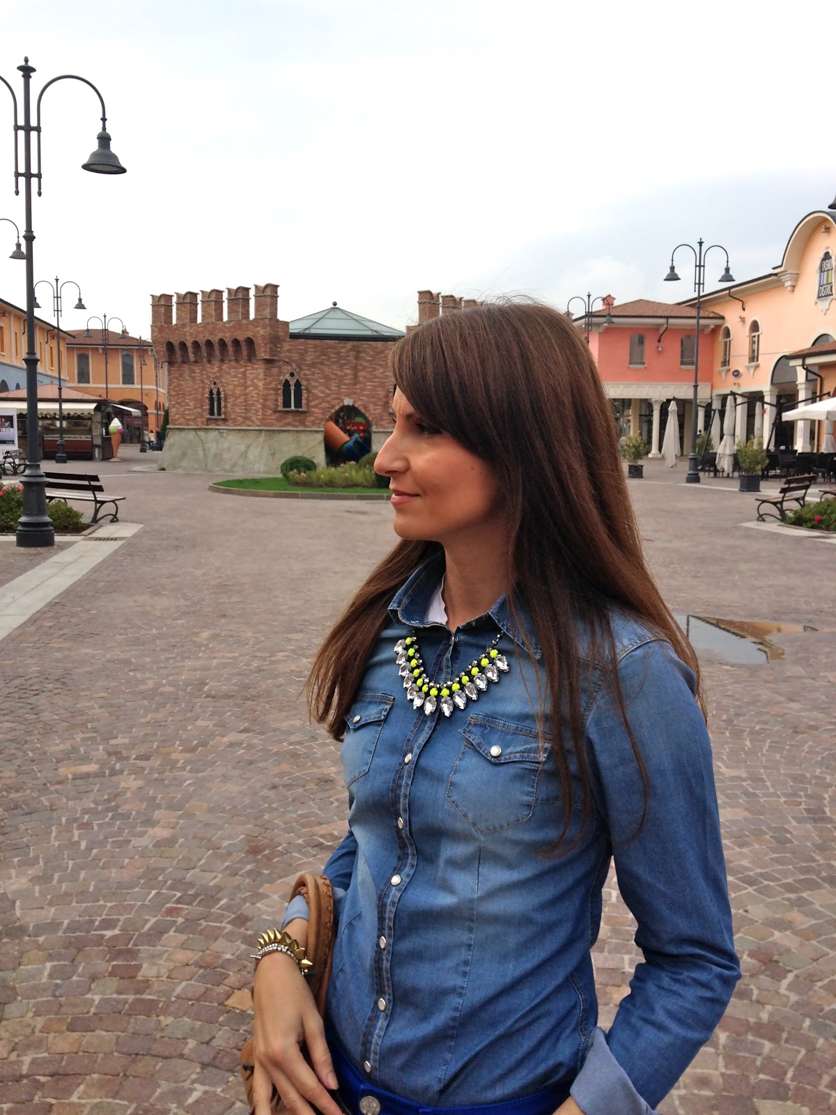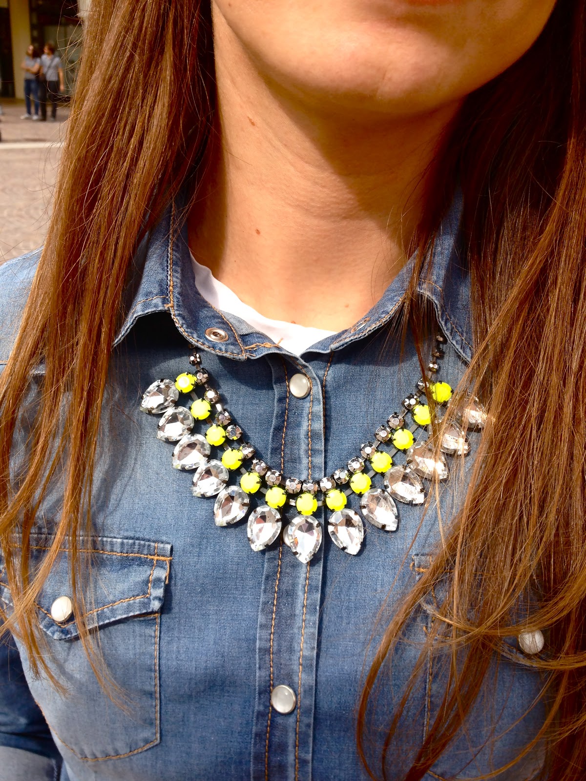 Il tocco perfetto, come la ciliegina, è la collana neon sulla camicina di jeans! oggi sei mia ospite, vieni a rimirarti :-)