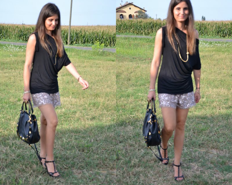 | Blouse: Sisley; shorts: Angie folies, bag: Miu Miu; my mum’s gold necklace and bracelets; silver bracelet: DoDo; ring: Deco Mela art; shoes: Graffio. |