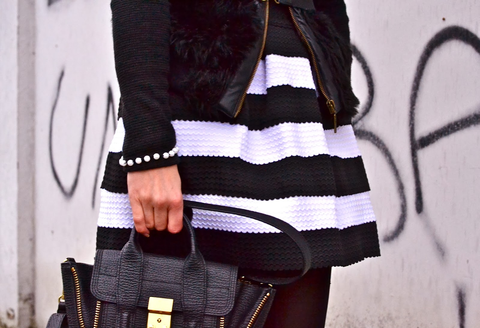 Il bianco e nero è sempre il massimo del glamour… mi piace tantissimo la tua gonna… e che bella anche la borsa…un bacio Lucy!