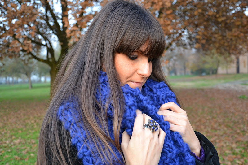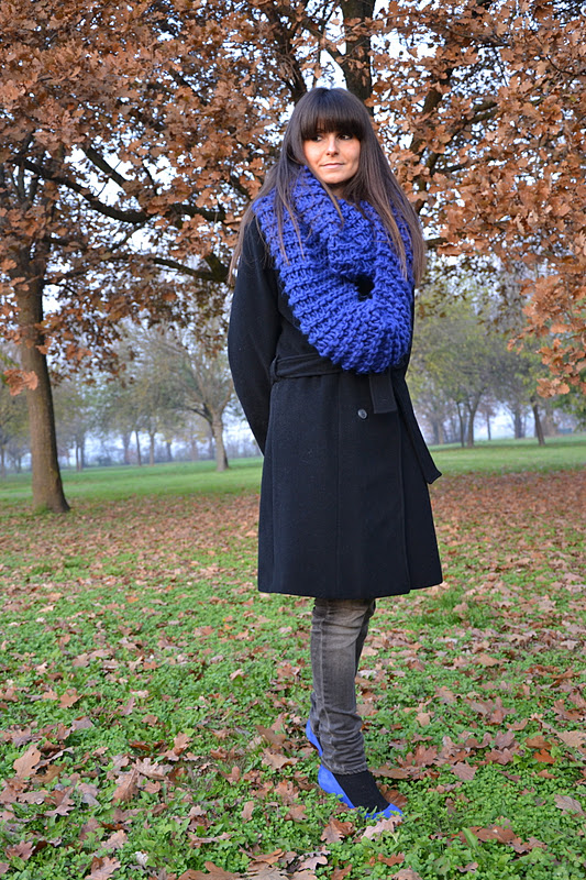 Questi scatti sono stati fatti ieri. Giornata non particolarmente fredda ma tanto umida. Infatti mi sono bagnata le scarpe camminando in mezzo all’erba, furba!!! Comunque, l’importante è stare calda al collo, e questa maxi-sciarpa che mi sono regalata la scorsa settimana è perfetta! Questo colore mi piace tantissimo, mi sa che nella lista dei miei colori preferiti è salito al secondo posto (al primo ci sono sempre il rosa e il viola, a pari merito!) Buona settimana a tutte voi!