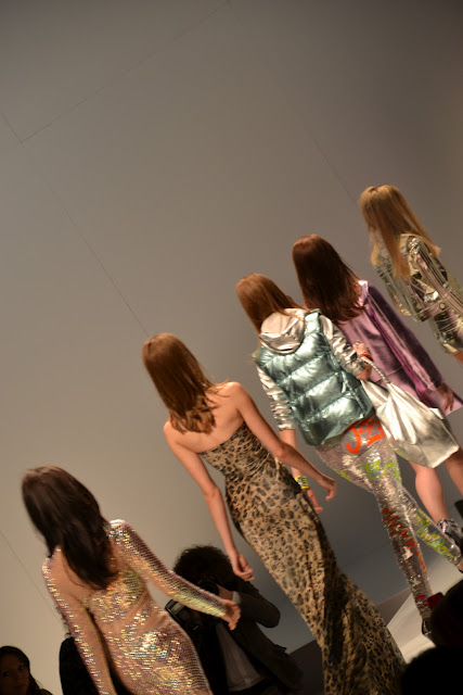 The Blumarine fashion show was fabulous, full of color. Futuristic fabrics, laminates, metal, plastic, iridescent and bright decorations. And a touch of leopard. Light. Faux fur coordinated with her ​​purse. A cheerful and casual collection that corresponds to 100% to my liking. In the backstage, I took all the carriages filled with these dreamy dresses The models were really beautiful! What should envy but walk a bit more slowly, it is difficult to take pictures! Among the guests, Martina Colombari and Elena Santarelli, (I have not had time to photograph, but I assure you that it is breathtakingly beautiful, and has a physique crazy!) It was a very nice, a real show! Thanks to Silvia.