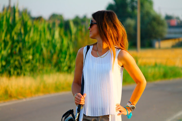 Queste belle foto sono state scattate da Gloria de La Borsa di Mary Poppins la scorsa settimana. Ci siamo incontrate per una cenetta e due chiacchiere e c’era una luce bellissima, così ci siamo dette: perchè non approfittarne per fare qualche foto? In verità anch’io le ho scattato tante foto ed ero così orgogliosa delle inquadrature… Invece per colpa (non mia, vero Gloria??? Ahahaha!) di un’impostazione sbagliata nella macchina fotografica ne sono venute solo una decina. Le vedrete presto nel suo blog, sono curiosa anch’io di vederle, perchè non so di preciso quali si sono salvate…  Happy Monday! These beautiful pics were taken by Gloria of La borsa di Mary Poppins last week. We met for a dinner and there was a beautiful light, so we said: why not take the opportunity to take some pictures? In truth I have taken too many photos and I was so proud of the shots Instead did not see anything, because the fault (not mine, is not it Gloria?? Haha!) of an incorrect setting in the camera we have just ten pics…
