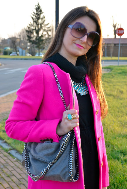 Adoro il look con il cappotto fucsia e la falabella;-)
