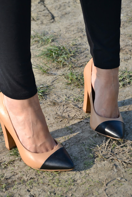 Love the simple way you wore camo. The black tights and heels look perfect with it.