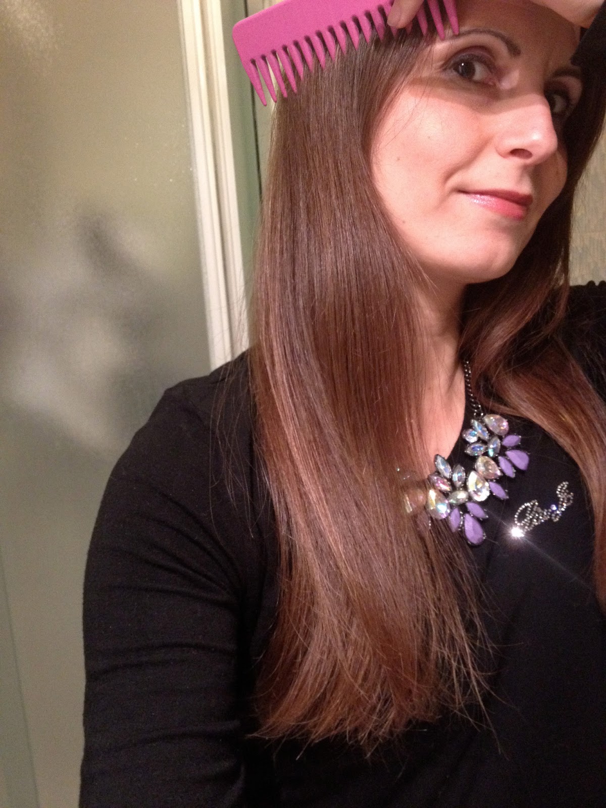 Here you are my set comb and brush for the handbag by TEK, of course pink! So cute! When I was contacted by this company to review this set of hair products, I agreed with much pleasure and I’ll explain you why: TEK combs and brushes are made in Italy of wood and antistatic rubber, ideal for those who like me has very thin hair and tend to flutter everywhere. Another very interesting thing, TEK has always paid attention to the environment and has adopted a policy of sustainable development, avoiding the savage deforestation. As you can see from the picture, the small hole located on the brush (I, who am smart, I thought there was missing a tooth…), allows air to escape from the tire, promoting a more gentle contact with the hair and scalp, as well as the rounded shape of the teeth.