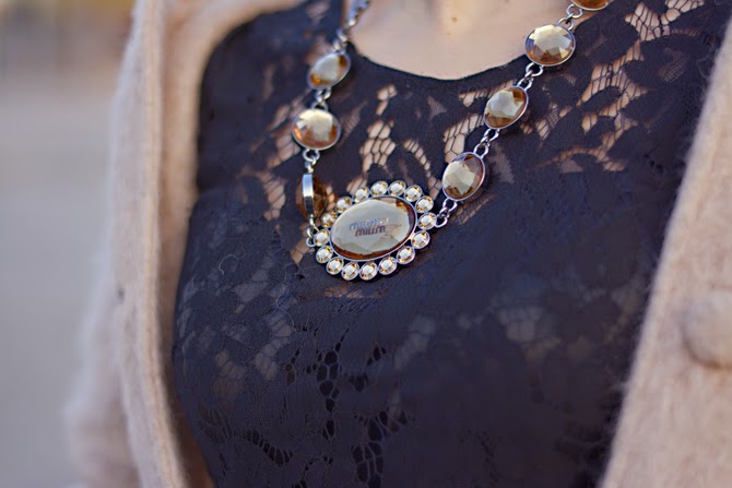 I decided to wear under my coat a lovely lace dress (low cost!!!) and strangely I felt at ease, although this is not my kind of favorite look (and I am not a fan of lace).