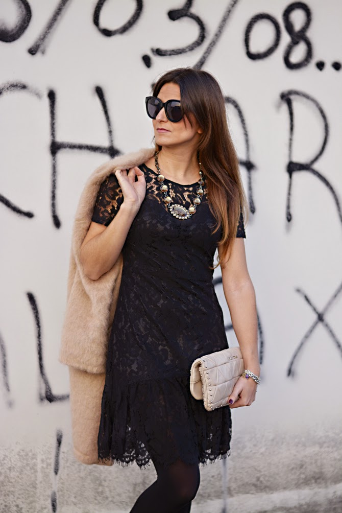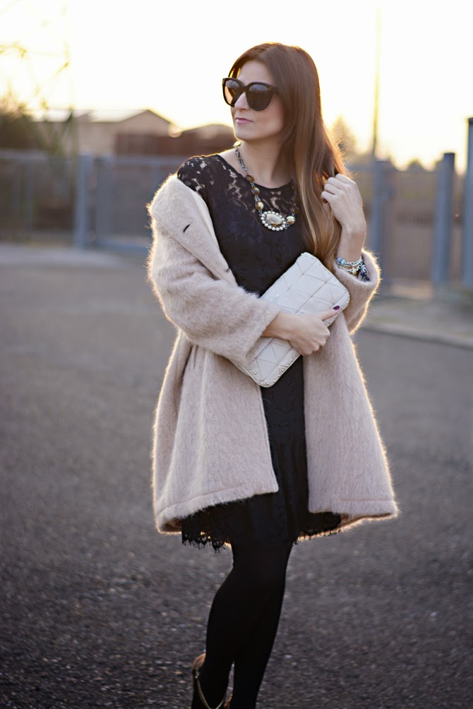 Per un’occasione un po’ più elegante del solito ho deciso di indossare sotto il cappotto un delizioso abitino in pizzo nero (non si direbbe ma è low cost) e stranamente mi sono sentita a mio agio, nonostante questo non sia il mio genere di look preferito e nonostante io non sia una fan del pizzo.