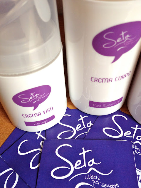 Ciao a tutti, oggi vi parlo di Seta, una nuova tecnologia di fotoepilazione a luce pulsata. La luce pulsata viene utilizzata già da tempo con grande successo per trattamenti di ringiovanimento della pelle; Seta è leader in Italia per l’utilizzo di questa tecnologia per quanto riguarda l’epilazione definitiva. Un metodo sicuro, rapido e indolore, basata sull’emissione di luce allo Xeno: sicuro in quanto viene sfruttata soltanto una specifica lunghezza d’onda del fascio luminoso, che va ad agire sul bulbo pilifero ma non sulla cute circostante. I trattamenti sono personalizzati in base alle caratteristiche del pelo, per questo motivo il numero di sedute necessarie è variabile. Per il momento sono presenti 20 centri Seta in Italia, e altri 10 verranno inaugurati a breve. Cercate QUI il centro più vicino alla vostra città. In particolare, mi vorrei soffermare su due prodotti creati appositamente da Seta per prendersi cura della nostra pelle anche a casa: la crema corpo e la crema viso antiage. La prima contiene sostanze emollienti e tonificanti, come aloe, burro di karite, glicerina e una protezione 50. La seconda è concepita per stimolare la produzione di collagene ed elastina, quindi ridurre i segni d’espressione, grazie anche alla presenza di acido ialuronico. Ho iniziato proprio oggi a provare questi prodotti, vi saprò dire tra alcuni giorni di trattamento; la prima impressione è comunque molto positiva: sono prodotti molto piacevoli sulla pelle, che appare subito più morbida e setosa. In particolare, ho trovato la crema viso estremamente idratante, rende la pelle subito più liscia e ha un profumo buonissimo!