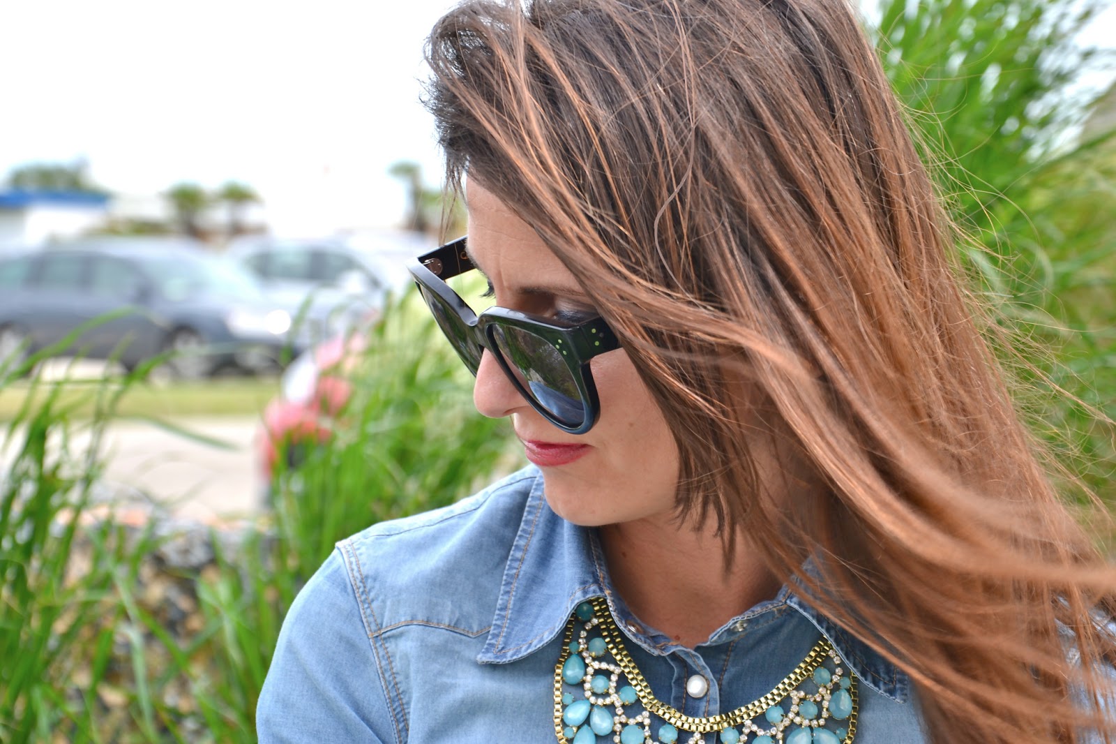 ma che bella la collana messa sulla camicia di jeans!!! un baio
