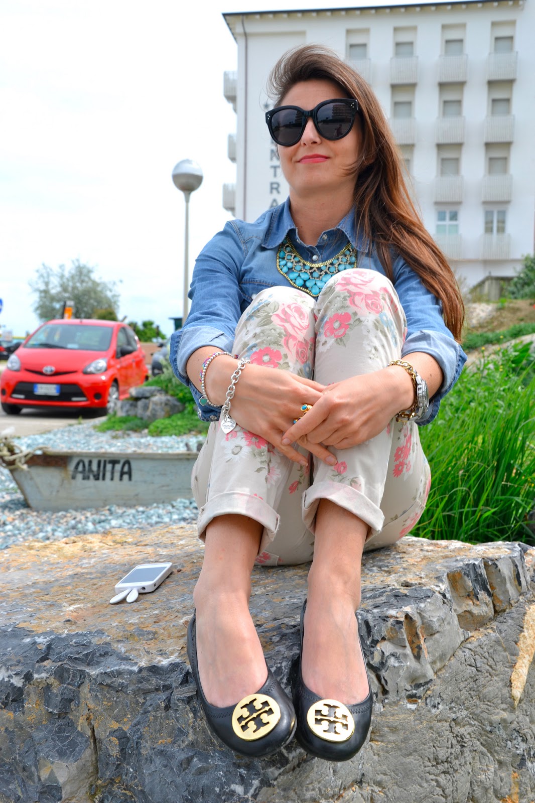 Ciao Lucy! Che carina! Mi piacciono un sacco i pants a stampa floreale abbinati alla camicia in jeans! Un bacio!:*