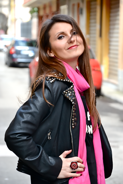 Cosa c’è di meglio di qualche tocco di pink nell’ennesima giornata grigia??? Ecco i miei nuovi stivaletti El Campero, che avevate già visto QUI. Li ho tenuti addosso tutto il giorno, sono comodissimi! Collana e anello sono di Nena’s Bijoux. Vi piace questo look un po’ biker?   HI! What‘s better than a touch of pink in yet another gray day?? Here are my new boots El Campero, that you had already seen HERE. I kept them on all day, they are so comfortable! Necklace and ring by Nena’s Bijoux. Do you like this look a bit ‘biker?