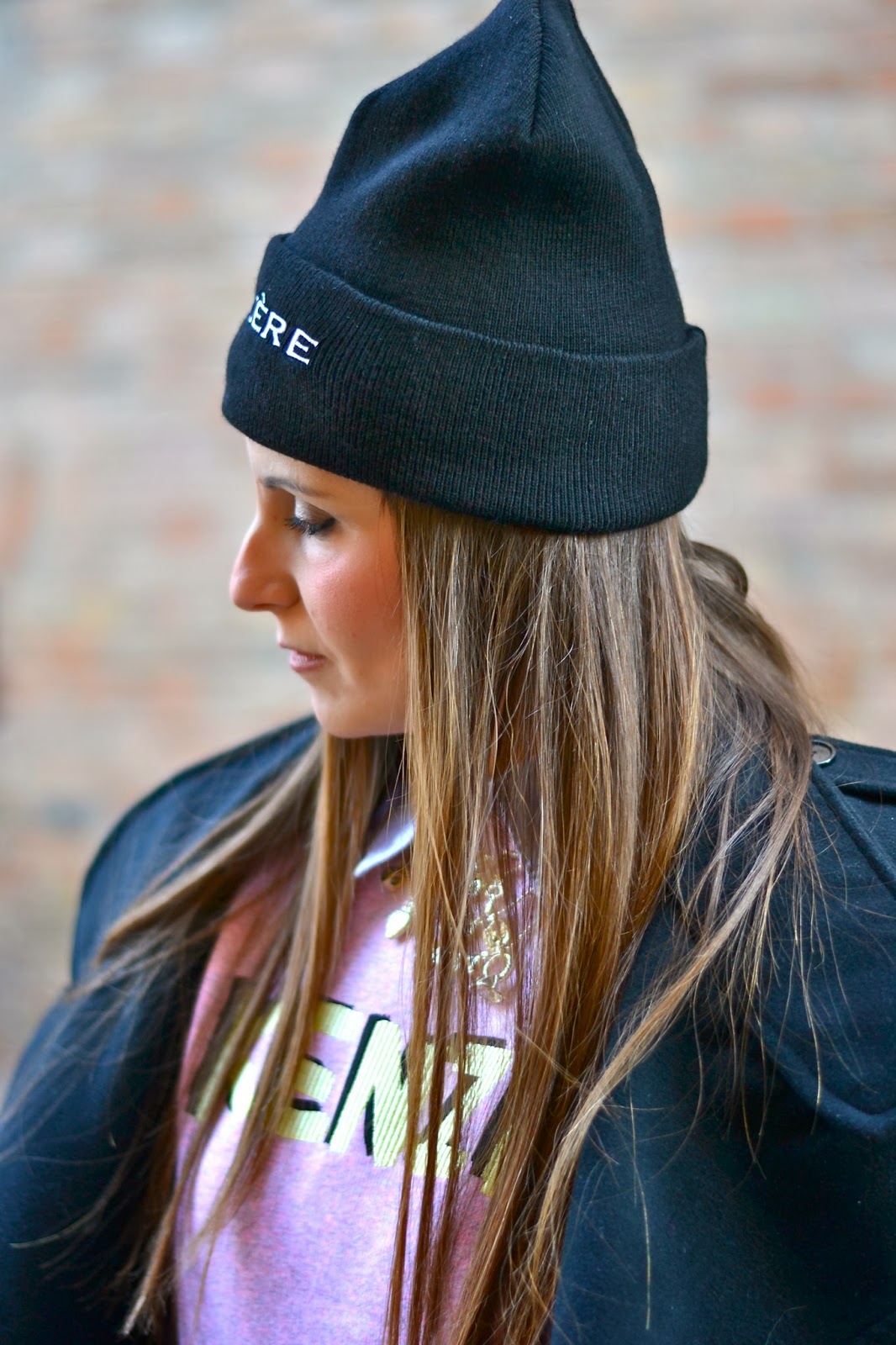 Sweatshirt: Kenzo cruise collection; shirt: Ralph Lauren; jeans: Dondup; Necklace: CHOIES; beanie: PREMIERE; jacket: Rinascimento; boots: Giuseppe Zanotti.