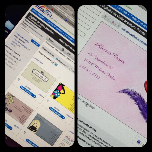 Hello everyone! We start the week with a question: you have business cards for your blog? Well, I haven’t… :(  and it’s a bit ‘of time that I feel the need. I was also informed by some printers and estimates were unrealistic for someone like me who has the blog only for pleasure and not for business. I had almost decided to give up and to continue to make the figure of the beggar and introduce me to the rare events in which I participate as “the girl of The pink carpet” without a shred of ticket … Then, someone talked me about  Vistaprint, online site specialized in the production of customized business cards. So happy! It ‘very organized! You can create your own business cards by choosing the type of paper, watermarks, colors, special effects! Based on your choices, ask for quote. There are many ready-made templates, or you can create your own business from scratch by entering your own logo. Needless to say, this beautiful site offers many other services, such as personalized calendars, photo books, printing t-shirts … I like, I like! I’m creating now my business cards, I can not wait to see the result (in the picture I’m looking around on the layout proposed by Vistaprint are many, too many!) Then, once placed the order, I will be sent to your home. Awesome! Prices? 250 tickets from 3.49!