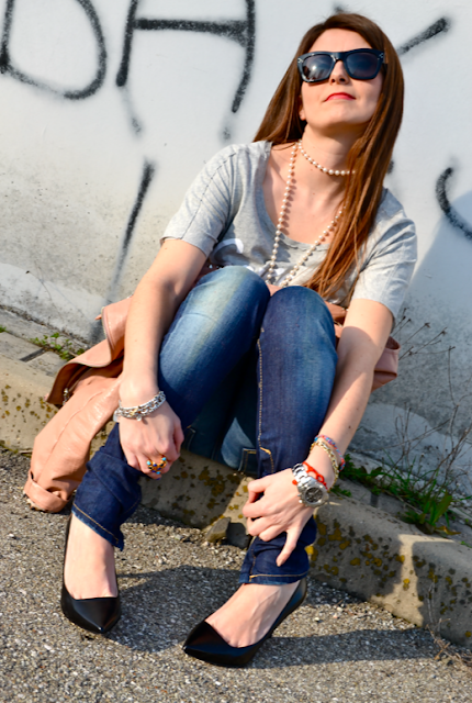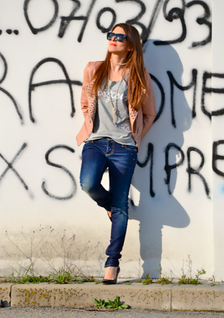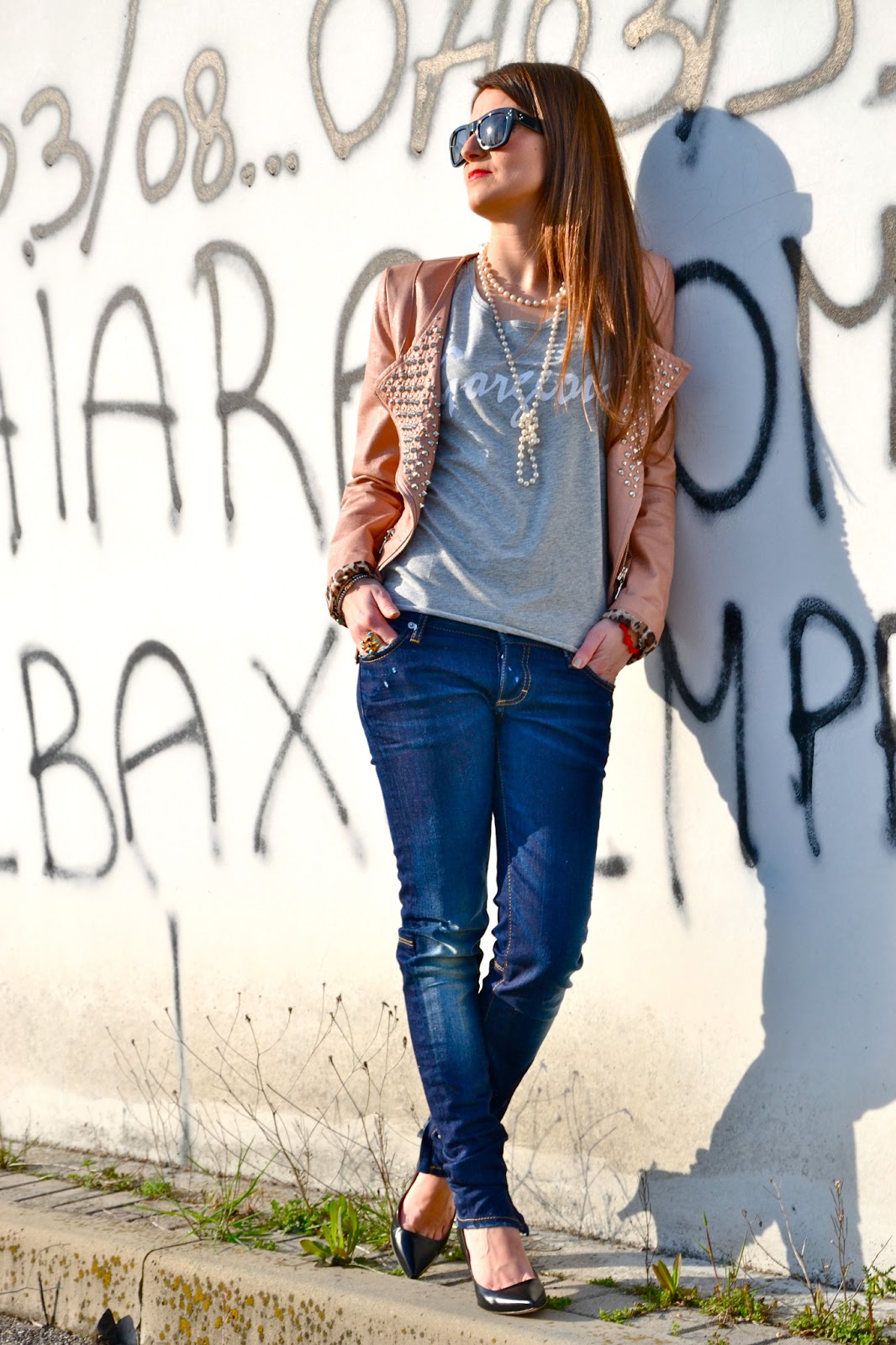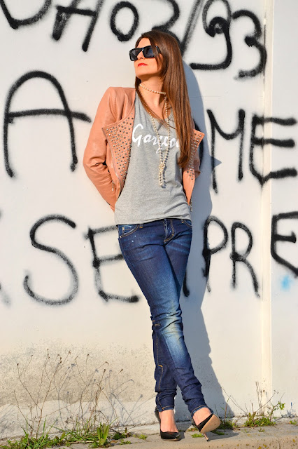 Buongiorno e buon sabato a tutti, ieri era una stupenda giornata di sole e finalmente è tornato il mio chiodo borchiato!!! Questo è il mio genere preferito di look, spero che vi piaccia! Oggi ho mezza giornata libera, scappo in centro a Bologna con la mia amica Elisabetta a fare danni in Galleria Cavour!!! Baci ! Hello andgood Saturday to everyone,yesterday wasa beautifulsunny day andfinally returnedmy belovedstudded jacket!This is myfavorite kind oflook, I hopeyou like it!Today I havea halfday off,I runin the center ofBolognawith my friendElisabettato do shoppinginGalleria Cavour!kisses!