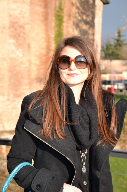 Pants: Forever21; coat: Rinascimento; bag: Balenciaga day col. Lagoon; bracelet: thanks to Sesem; boots: Giuseppe Zanotti; sunglasses: thanks to Sunglasseshop