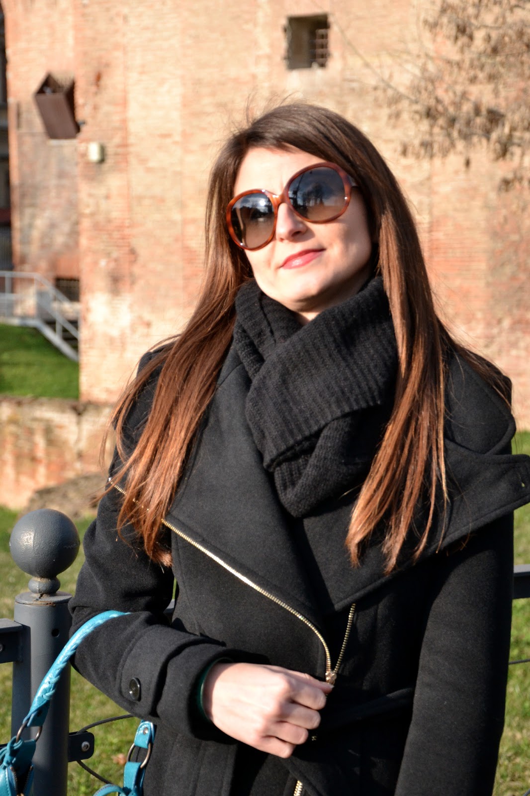 Pants: Forever21; coat: Rinascimento; bag: Balenciaga day col. Lagoon; bracelet: thanks to Sesem; boots: Giuseppe Zanotti; sunglasses: thanks to Sunglasseshop