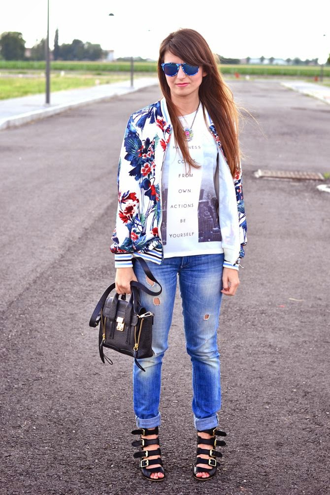 La tee è molto carina, mi piace la frase, ma ancor di più adoro il bomber. Bel look Lucy! Buon weekend!