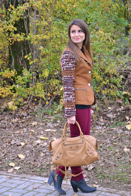 1. I like both jeans and burgundy pants. We seem to like and own the same bags. Right now, I am also carrying my blue Balenciaga City bag just like yours. I love Balenciaga bags too.