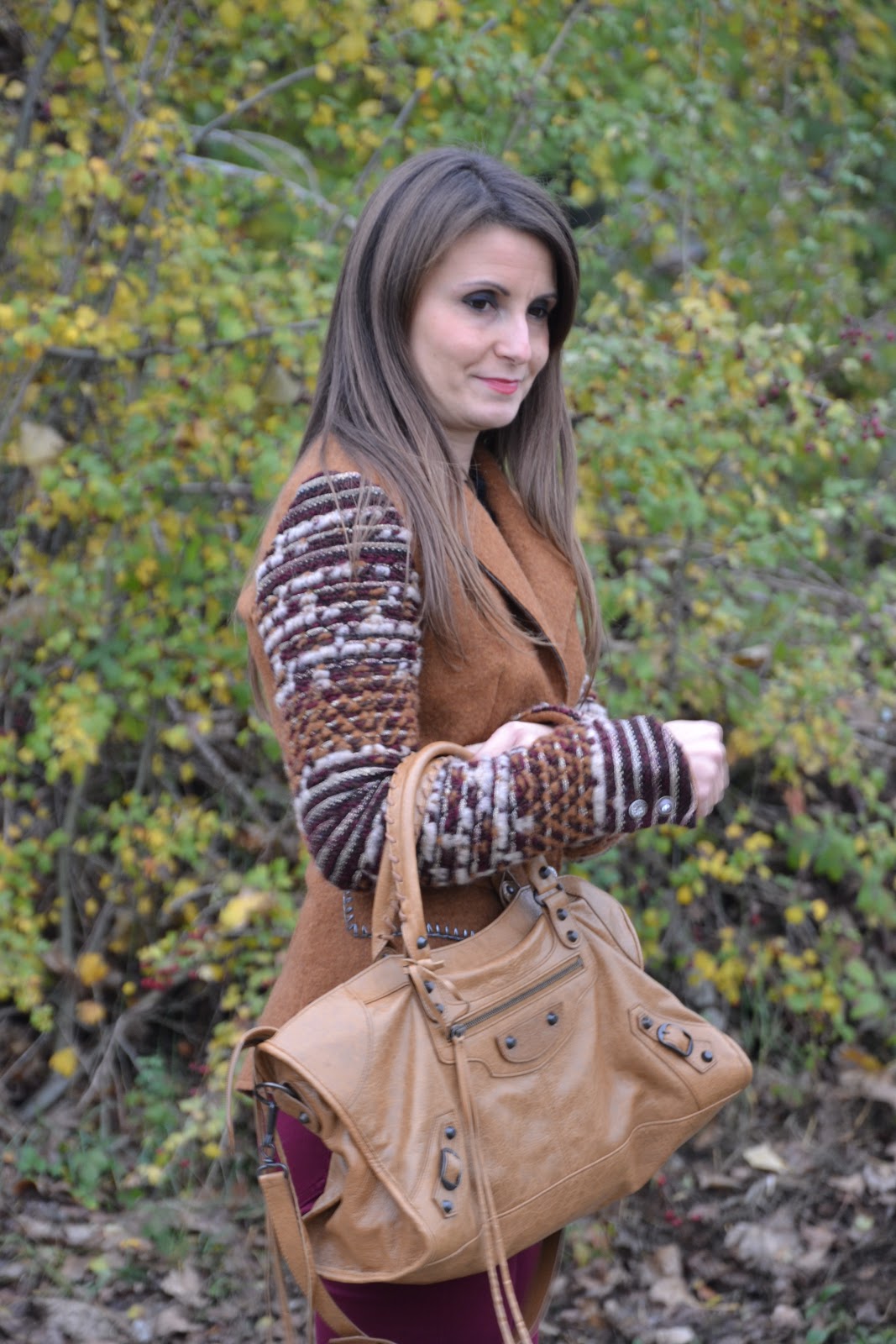 1. I like both jeans and burgundy pants. We seem to like and own the same bags. Right now, I am also carrying my blue Balenciaga City bag just like yours. I love Balenciaga bags too.