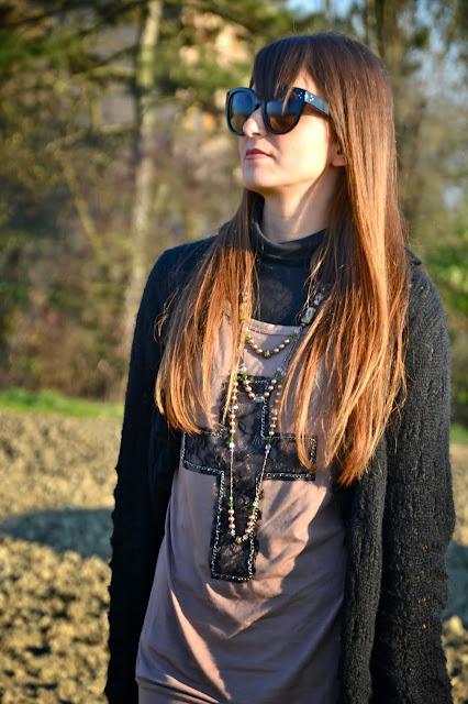 La maglia mi piace molto e i leggings ne riprendono il pizzo della croce, stai proprio bene!!