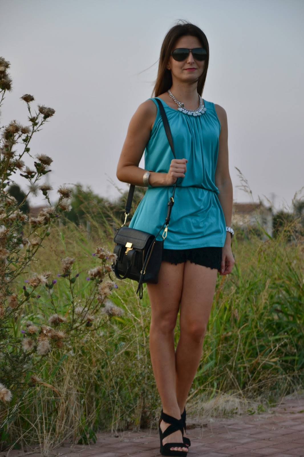Ciao a tutti, eccomi qui con gli occhiali Firmoo indossati, eravate curiose eh! Secondo me stanno meglio a mio padre, comunque ha ragione, sono davvero leggerissimi! E della collana di Chicnova che ne dite? Con questo top nè verde nè turchese (lagoon direi…) ereditato dal guardaroba di mia mamma che è ingrassata (è disperata…) è perfetta! L’unica cosa che non mi convince del tutto sono gli shorts (i soliti di pizzo di Zara), ho l’impressione che facciano sembrare le gambe più grosse, boh?   Hello everyone, Here I am with Firmoo worn glasses, you were curious eh! They’re really lightweight! And what do you think about the necklace by Chicnova? With this top inherited from my mom‘s wardrobe that is greased (it’s hopeless ) is perfect! The only thing that does not convince me at all are shorts (the usual lace shorts by Zara), I have the impression that make it seem bigger the legs, what do you say?