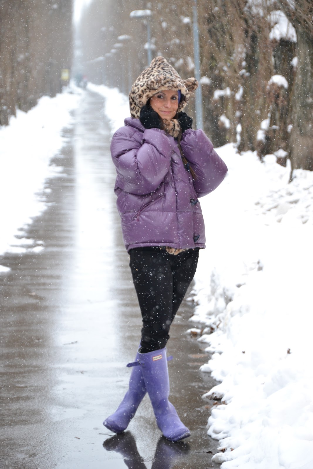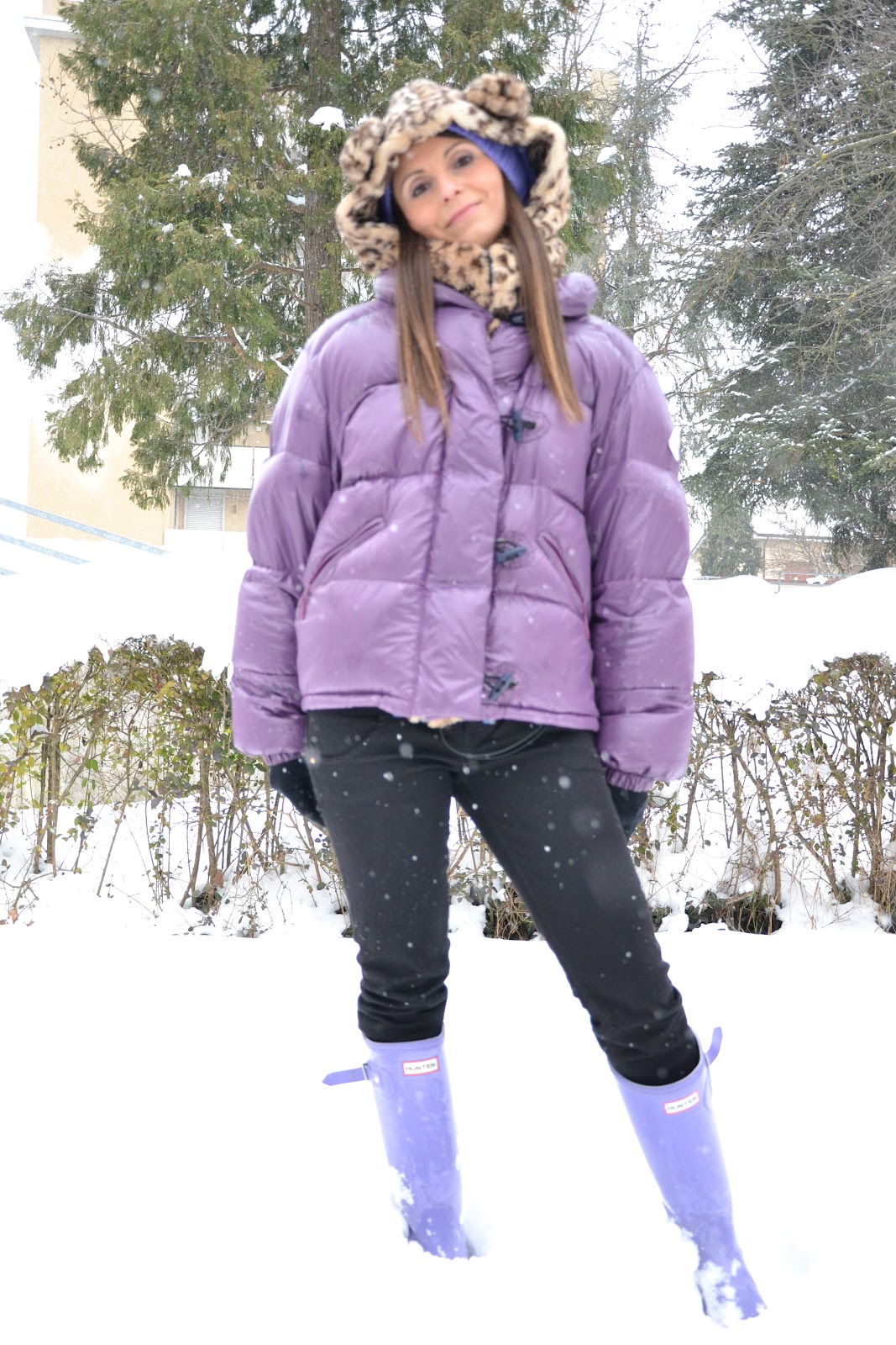 jacket: Moncler (very old); leo jacket: Storets; pants: Cycle; boots: Hunter