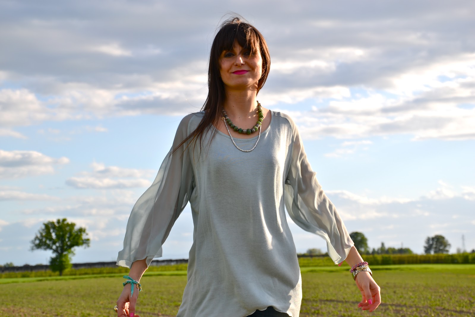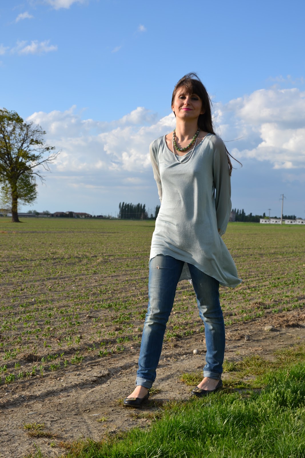 Buon sabato!!! Ecco alcuni scatti fatti oggi in campagna, con un cielo meraviglioso come sfondo. Come vedete sono tornata ai miei immancabili jeans…Monotona!!! Spero che vi piaccia la mia nuova blusa verde acqua, (che qui però sembra azzurra) io la trovo adorabile! Buon week end e un bacino!                                                                                                                                                                                         Happy Saturday! Here are some photos taken today in the country, with a stunning sky as background. As you see I’m back to my ever-present jeans Monotone! I hope you like my new blouse, I love it! Good weekend and a big kiss!