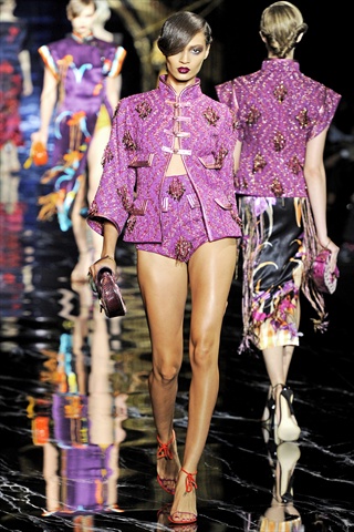 Wonderful proposals by Marc Jacobs for Louis Vuitton Spring–Summer 2011: bright colors and inviting, rich fabrics, flowing lines. Contemporary femininity.