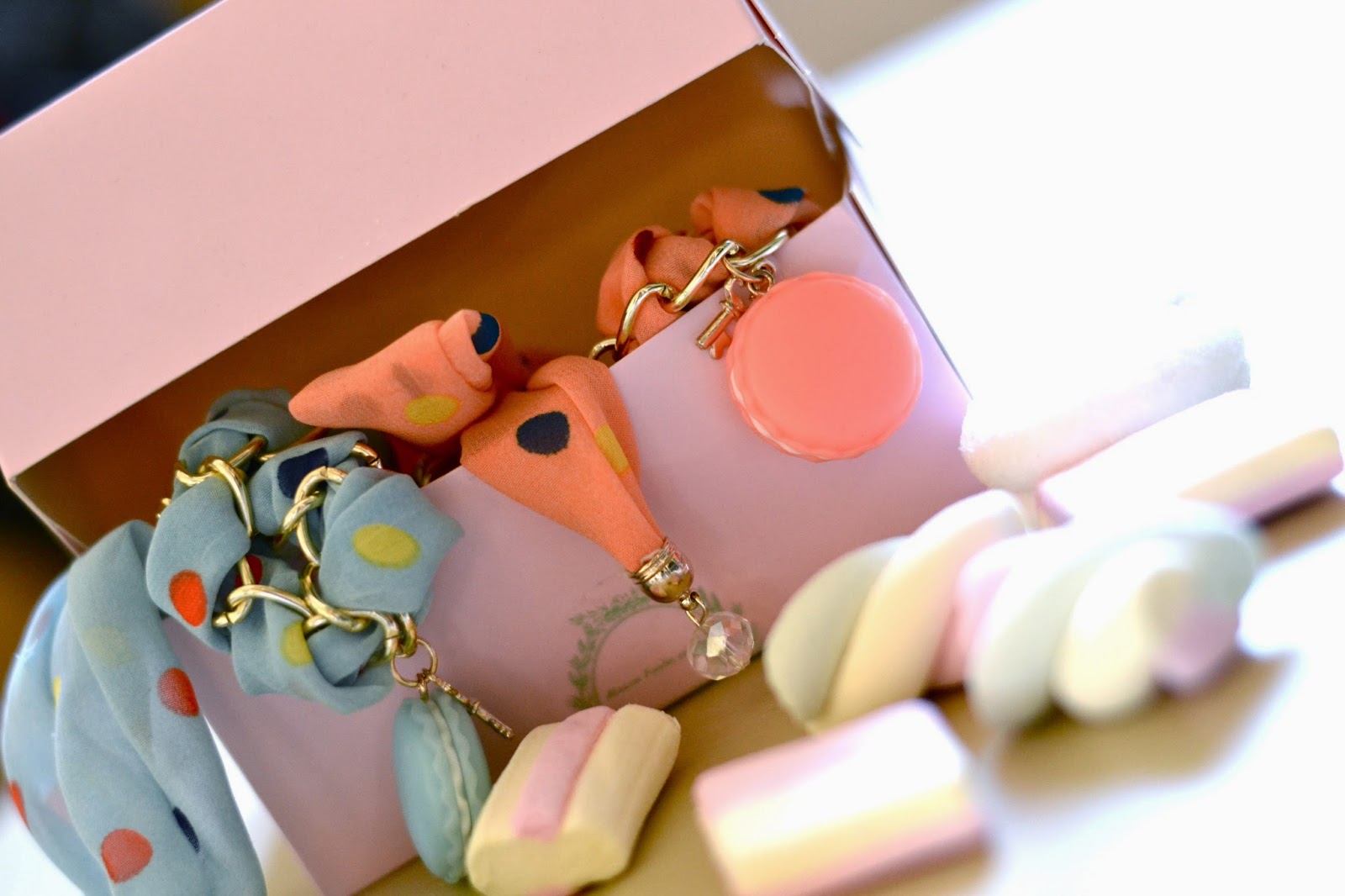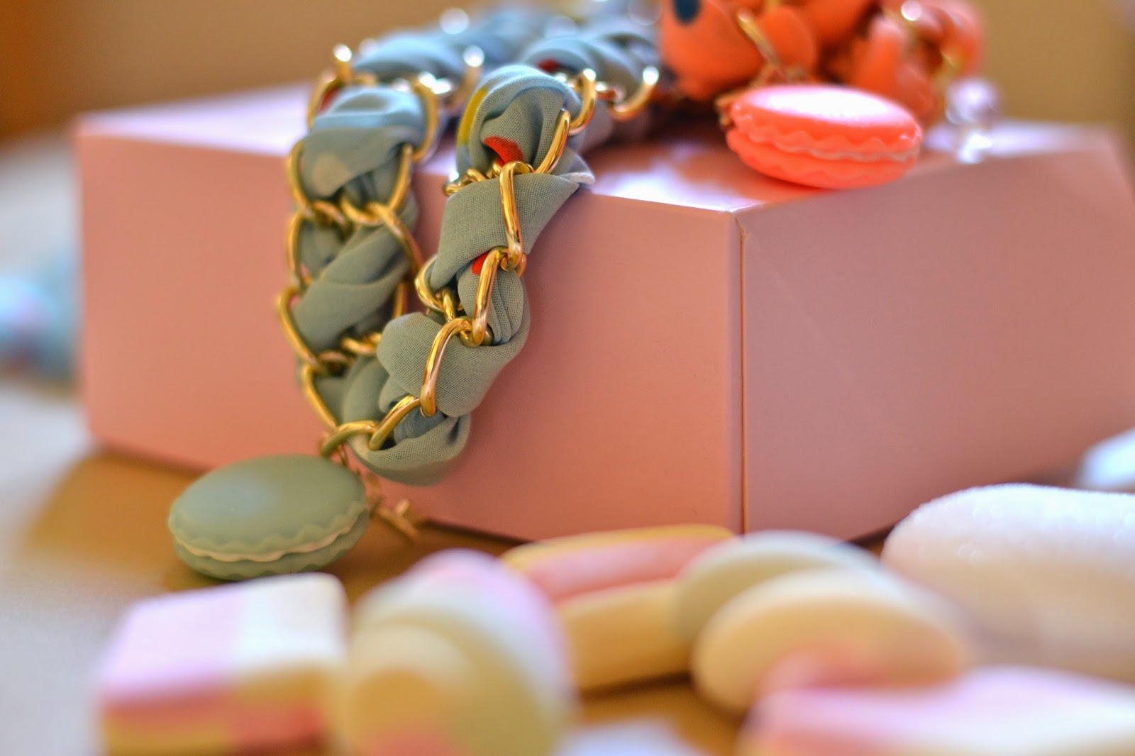 Buongiorno a tutti! Oggi iniziamo la settimana con alcuni nuovi arrivi molto graditi: i bijoux della nuova collezione Foulards di Secret of Macarons, che saranno disponibili nello shop online dal 2 aprile. Secret of Macarons propone Bracciali e collane con catena metallica e mini-foulard intrecciato, con ciondolo a forma di Macaron, troppo carini!