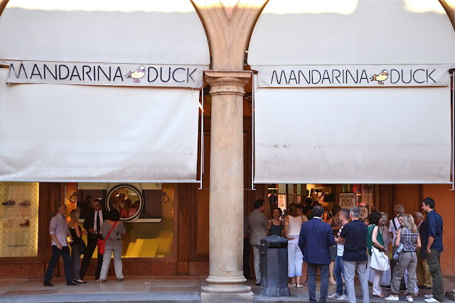 Il negozio è bellissimo: colorato e giovanile, come del resto è la filosofia Mandarina Duck. Un gioco di specchi rende ancora più spazioso e accogliente il grande negozio, e la visibilità dei prodotti è immediata. Le nuove linee di borse sono molto interessanti: versatili e resistenti grazie a materiali di qualità e a un design molto attuale e accattivante. Vedrete scorrendo il post le foto dei dettagli, che ne dimostrano la grande cura. Poi…sorpresa! E’ stato fatto il restyling delle due linee storiche che hanno reso famosa Mandarina Duck negli anni ’90: Utility e MD20. Impossibile non ricordare il mitico zainetto Utility in tela cerata, io lo adoravo, ne avevo 3! Ora le due linee si presentano rinnovate nei materiali e nel design, pur mantenendo la propria identità: materiale morbido e “gommoso” per la linea Utility, tessuto cangiante per la linea MD20. E guardate che colori! Adorooo! Fatemi sapere che ne pensate! Vi invito a visitare il sito web http://www.mandarinaduck.com/it/   dal quale, oltre a visionare tutte le linee e le relative descrizioni, potrete accedere alla sezione Shop on line!         Happy Sunday to everybody! Today I have the honor to show you the pictures of the event I attended on Wednesday: the inauguration of the new Mandarina Duck store in Bologna. The store is so beautiful: colorful and youthful, as is the philosophy Mandarina Duck. A game of mirrors makes more spacious and welcoming the great store, and products visibility is immediate. The new line of handbags and suitcases is very attractive, versatile and durable with high quality materials and very contemporary design. You will see, scrolling the post photos of details, which demonstrate the great care. Then … surprise! It made ​​the restyling of the two historical lines that made Mandarina Duck famous in the 90s: Utility and MD20. Impossible not to remember the legendary waxed canvas backpack Utility, I adored him, I had 3! Now the two lines you have restarted in materials and design, while maintaining his identity: soft and rubbery” for the Utility line, iridescent fabric to line MD20. And look at that color! Love them all! Please visit the website  http://www.mandarinaduck.com/it/ . You can see all the lines and their descriptions and you can navigate to the online shop! Let me know what you think!