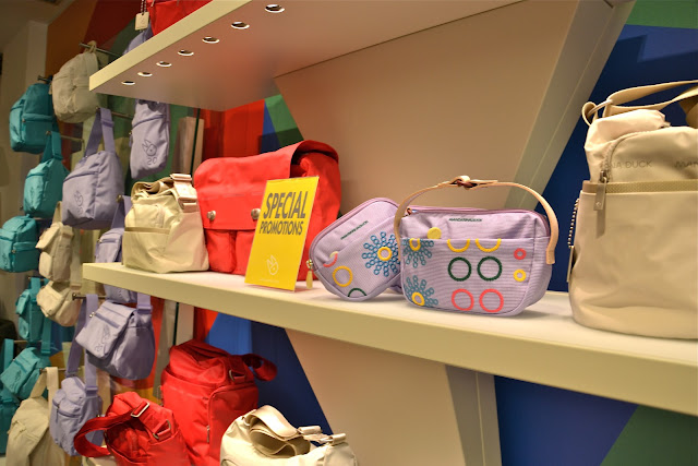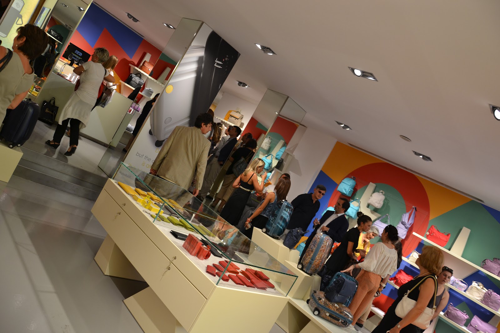 Il negozio è bellissimo: colorato e giovanile, come del resto è la filosofia Mandarina Duck. Un gioco di specchi rende ancora più spazioso e accogliente il grande negozio, e la visibilità dei prodotti è immediata. Le nuove linee di borse sono molto interessanti: versatili e resistenti grazie a materiali di qualità e a un design molto attuale e accattivante. Vedrete scorrendo il post le foto dei dettagli, che ne dimostrano la grande cura. Poi…sorpresa! E’ stato fatto il restyling delle due linee storiche che hanno reso famosa Mandarina Duck negli anni ’90: Utility e MD20. Impossibile non ricordare il mitico zainetto Utility in tela cerata, io lo adoravo, ne avevo 3! Ora le due linee si presentano rinnovate nei materiali e nel design, pur mantenendo la propria identità: materiale morbido e “gommoso” per la linea Utility, tessuto cangiante per la linea MD20. E guardate che colori! Adorooo! Fatemi sapere che ne pensate! Vi invito a visitare il sito web http://www.mandarinaduck.com/it/   dal quale, oltre a visionare tutte le linee e le relative descrizioni, potrete accedere alla sezione Shop on line!         Happy Sunday to everybody! Today I have the honor to show you the pictures of the event I attended on Wednesday: the inauguration of the new Mandarina Duck store in Bologna. The store is so beautiful: colorful and youthful, as is the philosophy Mandarina Duck. A game of mirrors makes more spacious and welcoming the great store, and products visibility is immediate. The new line of handbags and suitcases is very attractive, versatile and durable with high quality materials and very contemporary design. You will see, scrolling the post photos of details, which demonstrate the great care. Then … surprise! It made ​​the restyling of the two historical lines that made Mandarina Duck famous in the 90s: Utility and MD20. Impossible not to remember the legendary waxed canvas backpack Utility, I adored him, I had 3! Now the two lines you have restarted in materials and design, while maintaining his identity: soft and rubbery” for the Utility line, iridescent fabric to line MD20. And look at that color! Love them all! Please visit the website  http://www.mandarinaduck.com/it/ . You can see all the lines and their descriptions and you can navigate to the online shop! Let me know what you think!