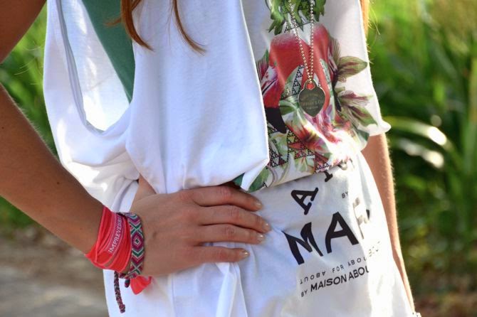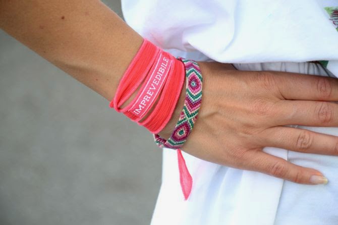 Ultimamente sono sempre alla ricerca di look comodi e freschi, non sopporto il caldo afoso della zona in cui abito e l’estate non è decisamente la mia stagione preferita. Ho trovato un mood che mi rappresenta totalmente con i capi Maison About for About. Questa maxi canotta per esempio mi ha colpito molto sia per il motivo della stampa tucano, ormai diventato tormentone estivo delle bloggers, stravisto su gonne, magliette e sui celebri costumi Bikini Lovers (le bellissime Nima Benati e Chiara Biasi docent) sia per i colori vivaci. Nonostante le dimensioni over, con una cintura diventa portabilissima anche in città e vista l’occasione (un giro in bici) ho deciso di abbinarli ad un paio di shorts borchiati Zara e ai sandali bassi di SKA shoes. Un tocco di colore al polso, un mix tra nuovo e vecchio: bracciali in seta WORD IT, e i sempre attuali friendship bracelets, che da ben 22 anni a questa parte, ogni estate, non mancano di decorare i miei polsi e darmi allegria. P.s. mi è venuto un dubbio, sollevato anche dalla mia amica blogger Fabiola Tinelli: ma è un tucano, un fenicottero o addirittura un cavaliere d’Italia? Boh! Ornitologi fatevi avanti! In these days I’m always looking for comfortable and cool looks, I can’t stand the extreme heat in the area where I live and the summer is not definitely my favorite season. I found my favorite mood with Maison About for About clothes. This maxi tank, for example. I was very impressed by both the flamingo print, which has become summer hit of bloggers, as seen on skirts, shirts and swimwear, like the famous Bikini Lovers (the beautiful Nima Benati and Chiara Biasi docent) for both bright colors. Despite its size over, with a belt becomes wearable even in the city, and for a bike ride I decided to combine them with a pair of old Zara shorts and black sandals by SKA shoes. A touch of color, a mix of new and old: WORD IT silk bracelets, and DIY friendship bracelets and always current: every summer, there are plenty of decorating my wrists and give me joy. P.S. I had a doubt, also raised by my blogger friend Fabiola Tinelli: but it is a toucan, a flamingo or even a knight of Italy? Boh! Ornithologists come forward! |