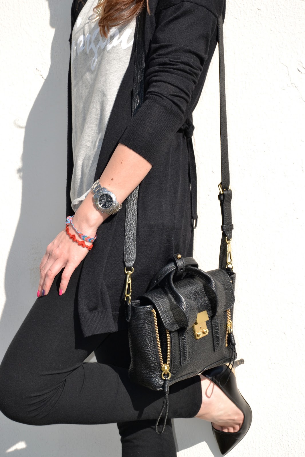 Tee: Mango; cardigan: Gotha; pants: no brand; pumps: Elisabetta Franchi-Celyn B; sunnies: Cèline; bag: Phillim Lim 3.1 mini Pashli.