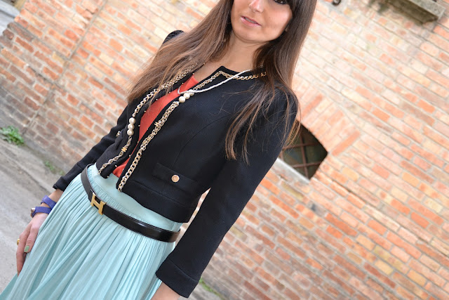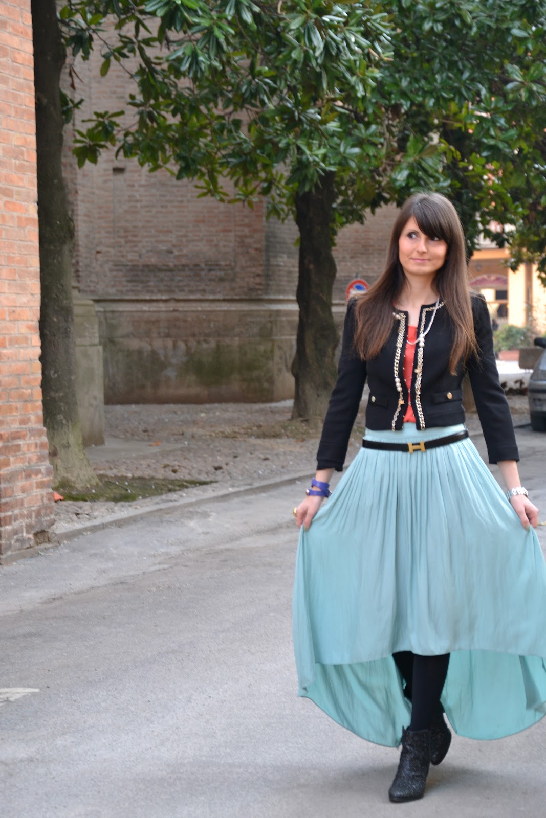 Here are the outfit photos I have chosen to participate at the Blumarine fashion show ! It was so hot that seemed spring and my new Zara skirt was perfect. I love this teal color! I hope you enjoy it! Kisses!