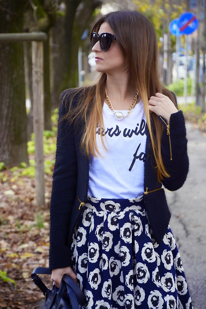 Se avete voglia di dare uno sguardo ad un altro look dove indosso una midi skirt floreale, decisamente più primaverile, lo trovate qui: