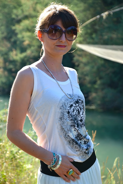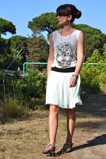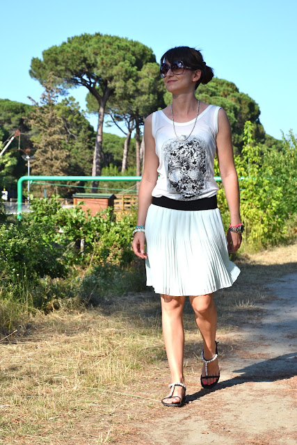 Bonjour! Oggi gonna verde menta e canotta con teschio (anche se non si capisce molto a dire la verità…) Stamattina sono andata in centro a Modena a fare un giro a caccia di saldi ma non ho trovato proprio un bel niente! Poche cose belle e prezzi troppo alti! Voi avete trovato qualcosa di carino?Bonjour! Today,mintgreen skirtwith atank topwith skull(even if you do not understandmuch to tell thetruth …) Today I wentin Modenafor a ridein search ofsales, but Ihaven’t foundanything! Few thingsbeautifuland too high prices! Did you havefoundsomething nice?