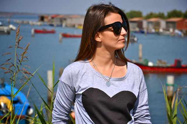 Queste foto sono state scattate una decina di giorni fa, durante il mio ultimo sabato libero. Una giornata di fine estate trascorsa dove il fiume si confonde con il mare, insieme alla mia famiglia in un posto particolare: la sacca di Goro e il Parco del Delta del Po. Ogni tanto a noi piace fare un giretto da quelle parti, è molto rilassante, tutta natura e pescatori, e ne approfittiamo sempre per fare un pranzetto a base di pesce appena pescato… Look super comodo ovviamente, e la protagonista è la mia maglia con mega-cuore di Chicnova. Vi piace? Per me è carinissima! |
