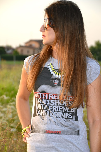 Che bella questa tee, mi piace anche la scelta degli accessori!!!