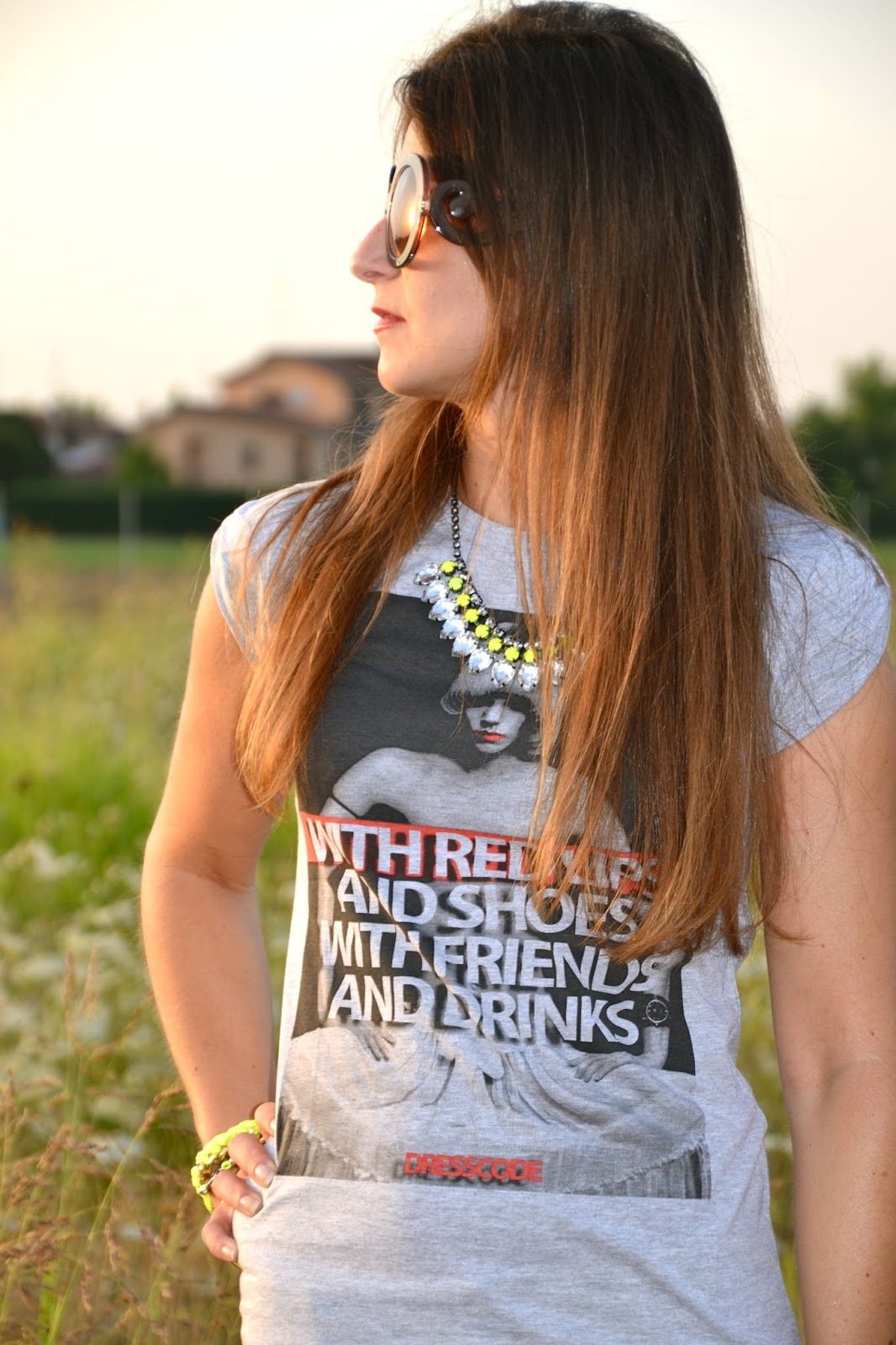 Che bella questa tee, mi piace anche la scelta degli accessori!!!