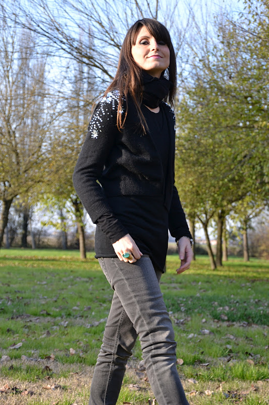 Ieri era una giornata stupenda, con un sole e un cielo azzurro davvero rari nell’inverno padano. Ne abbiamo approfittato per fare qualche scatto sfruttando la luce calda e morbida. Qui in primo piano uno dei miei cardigan preferiti, acquistato da H&M l’anno scorso. Le mie colleghe ogni volta che lo vedono mi fanno complimenti…Fa un bell’effetto, eh? Vi auguro un buon week end, per la prima volta domani sarò a casa dal lavoro pure io, evento eccezionale!