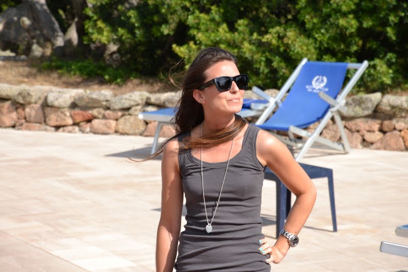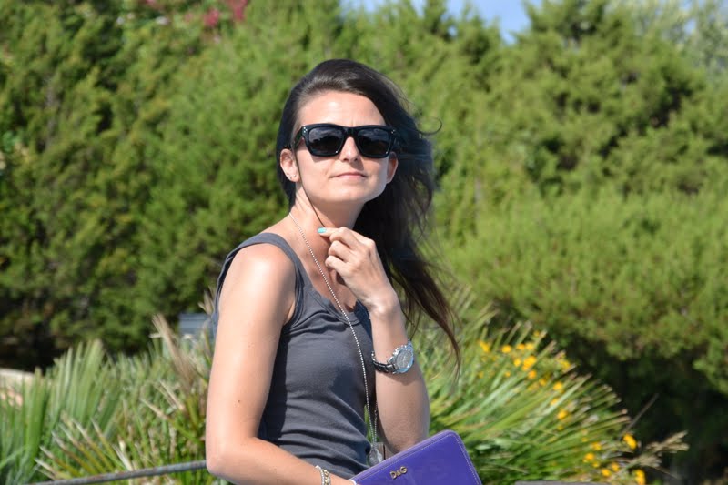 Sunnies: Cèline; top: Manila Grace; necklace e bracelets: Tiffany; clutch: D&G; sandals: Agatha Cri; Kiko nailpolish.