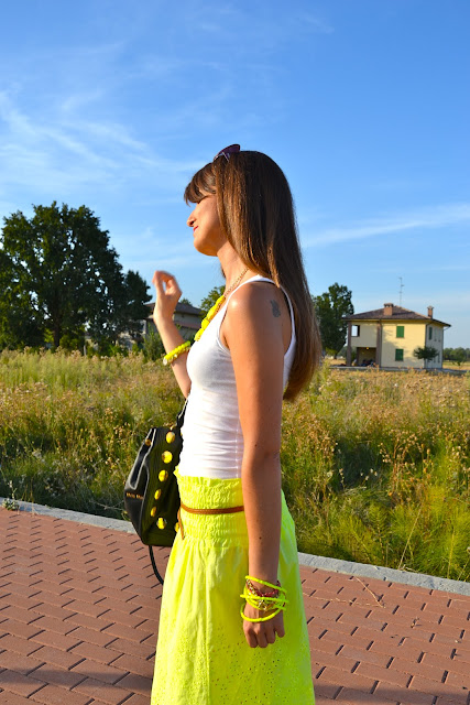 Eccoci qui con un altro neon outfit! Cosa ci posso fare? Questi colori fluo mi piacciono tanto! Sarà un disastro quando passeranno di moda e io mi stuferò, mi toccherà eliminare buona parte del guardaroba, uff!
