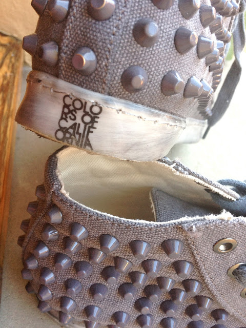 | Belle, borchiate e comode. Ecco in anteprima le sneakers che ho scelto per l’estate, by Colors of California. In canvas per non soffrire il caldo, grigio e borchiate per essere sempre un po’ rock. E vi lascio alle foto mentre ascolto in sottofondo questo splendido pezzo metallone di Ronnie James Dio. Presto le vedrete ai miei piedi, sono comodissime perchè hanno una specie di plantarino gommoso morbido morbido! Un bacione. Studded, comfortable and so lovely! Here’s a preview of the sneakers that I have chosen for the summer, by Colors of California. In canvas for not suffering from the heat, gray and studded to be getting a little ‘rock. And I leave the photos in the background while listening to this beautiful piece of Ronnie James Dio. Soon you will see them at my feet, they are very comfortable because they have a kind of rubbery soft soft sole! A big kiss. |
